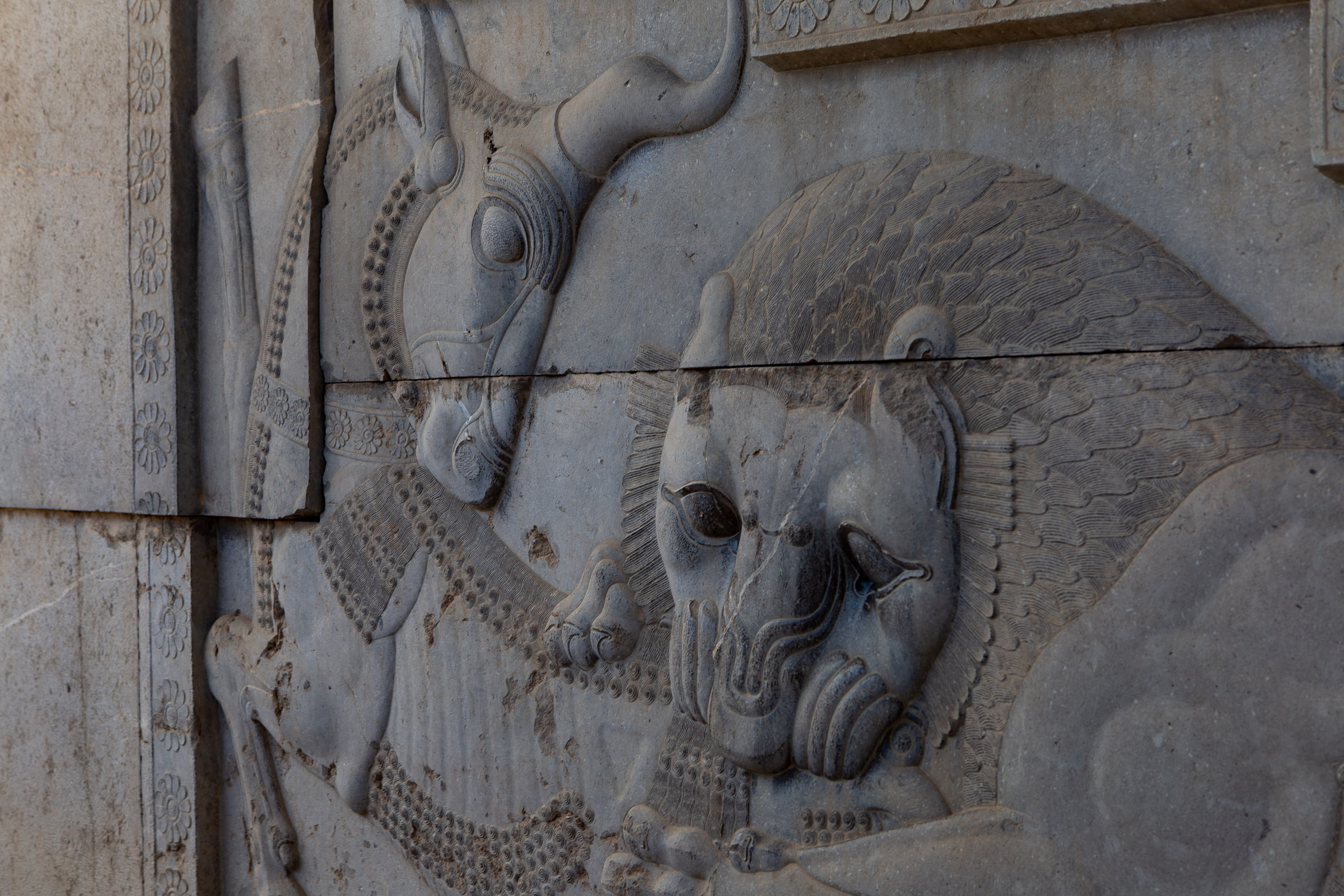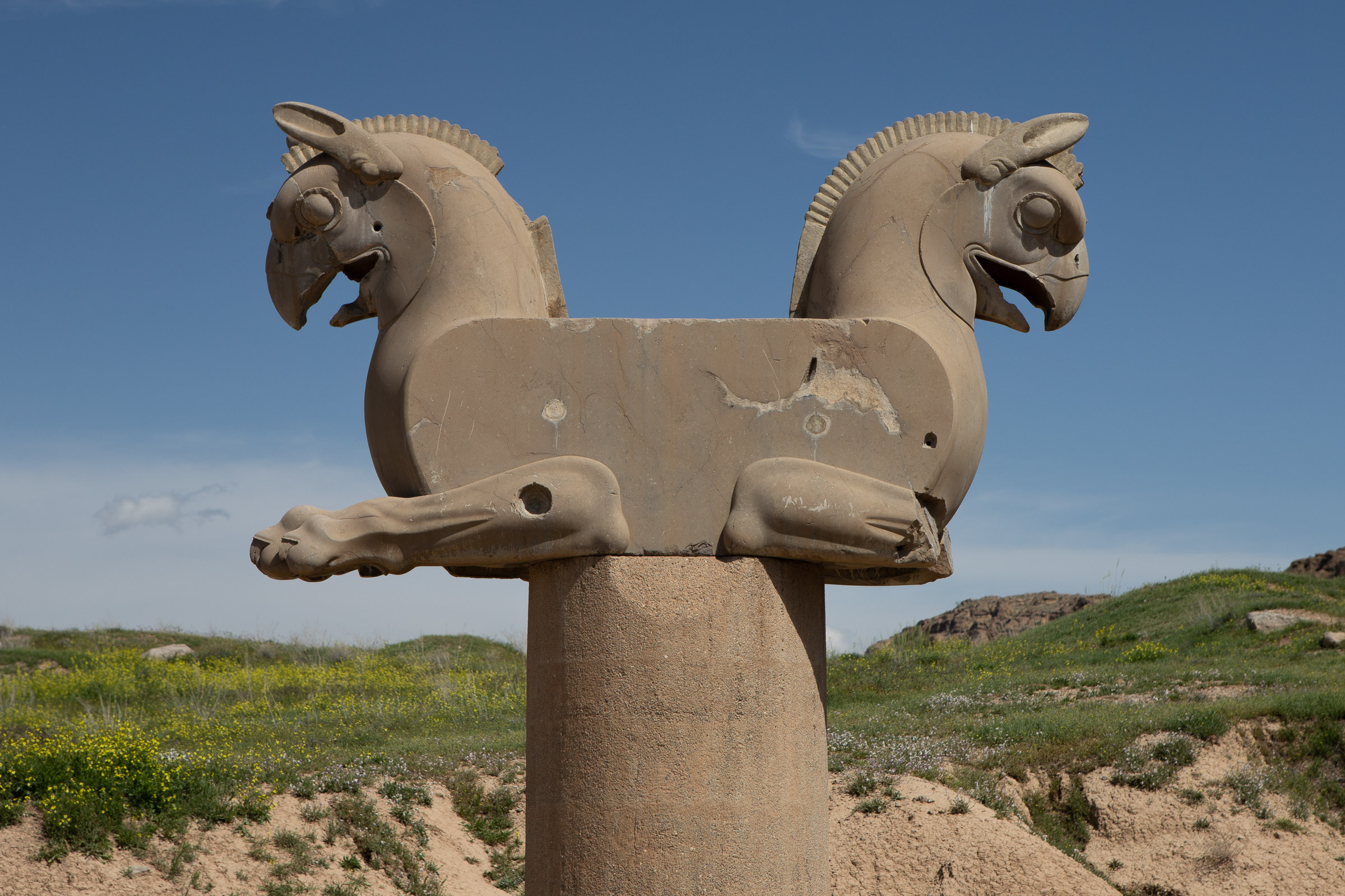 Ethnic stereotypes would appear to be a longstanding artistic tradition and, as we moved along the relief, Peyman pointed out the ringlets on the hair of the Jewish envoys and the billowy pants of the Afghans and the pot-bellied, shirtless Indians. At the end of this procession sits the Emperor – thought to be Darius I – who sits on a throne flanked by his heir, Xerxes3. Both these figures are substantially taller than those bringing tribute. Stuffy historians and archeologists would no doubt say that this difference in height symbolises the Emperor’s exalted status but Zack Snyder knows it’s because the Emperor and his son were actually nine foot tall freaks of nature.