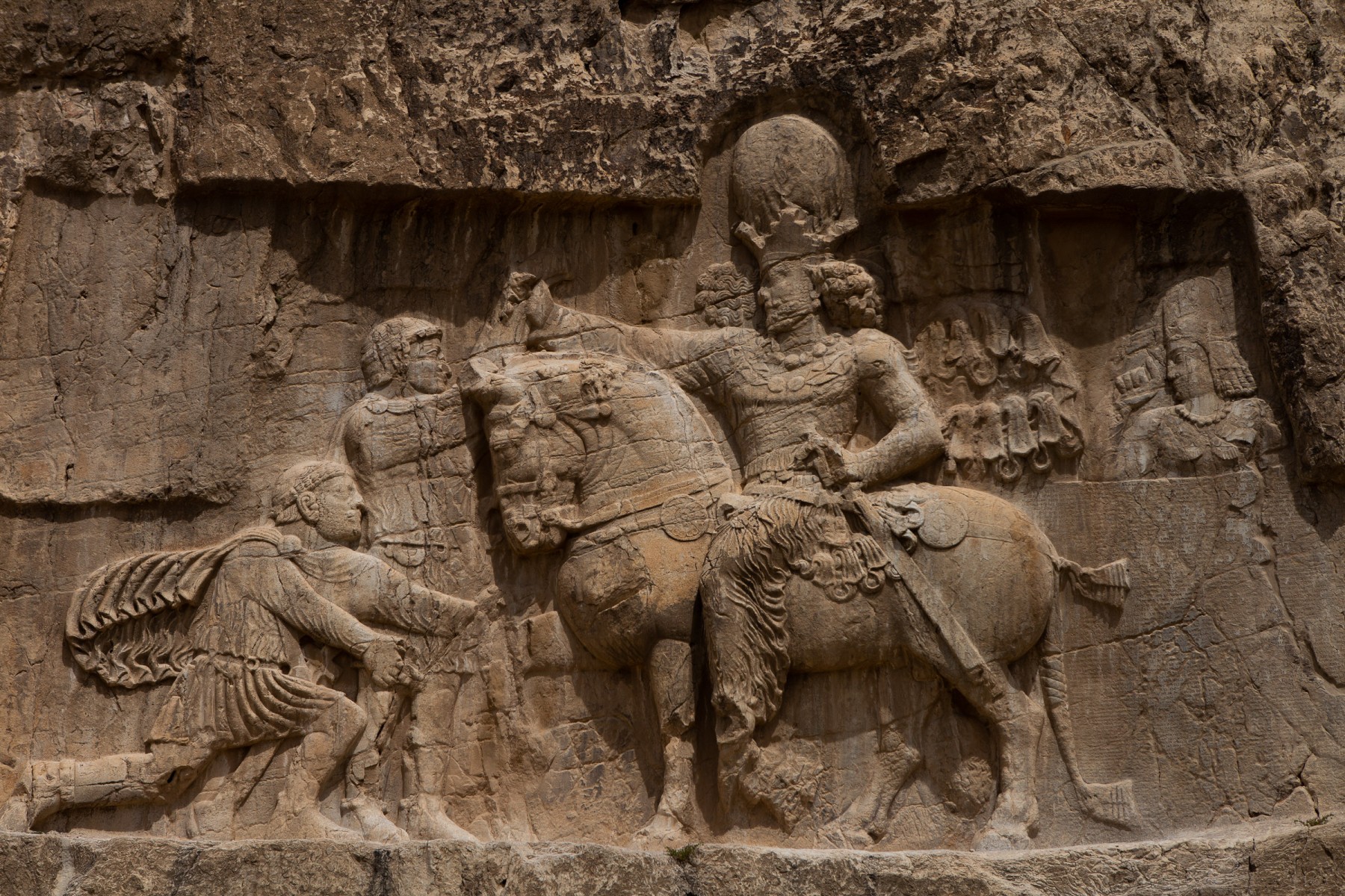 Understandably the Roman sources for the Battle of Edessa are pretty thin and they tend to blame the outcome on foreign treachery. But the defeat at Edessa wasn’t the only humiliation inflicted on the Romans during that era. The inscription on the relief at Naqsh-e Rostam tells us that, eighteen years earlier, Shapur defeated an army led by the young Roman Emperor Gordian III (Gordian appears to have been killed during or shortly after the battle). Following that victory Shapur states that he managed to extract a massive tribute from Gordian’s successor Phillip the Arab in return for ending his campaign across Armenia. Finally, in 260, he describes his victory at Edessa where his troops faced down 70,000 Roman troops and ultimately captured the Emperor Valerian. After documenting this string of triumphs Shapur assures his audience that he also conquered lots of other places but he doesn’t want to labour the point.